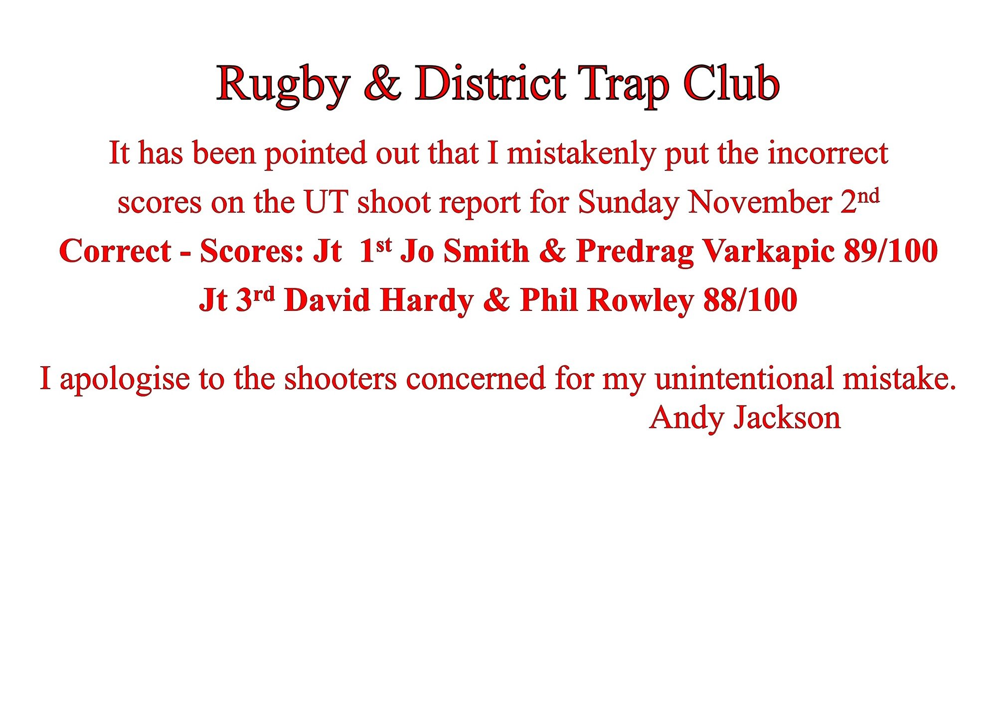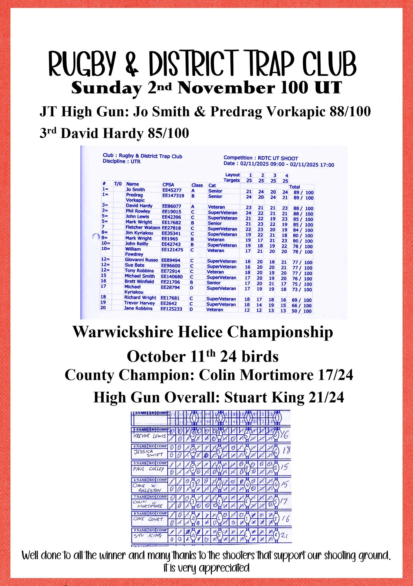 Many thanks to all our shooters for continued support of our shooting ground and for all the help we are given, it is very much appreciated. many thanks to Alan Rowley who was able to stay behind and help put equipment away it was greatly appreciated.